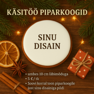 Soovi korral teen piparkoogile just sinu disainiga pildi – näiteks ettevõtte logo, lapse joonistuse, pühadetervituse või muu erilise kujunduse.