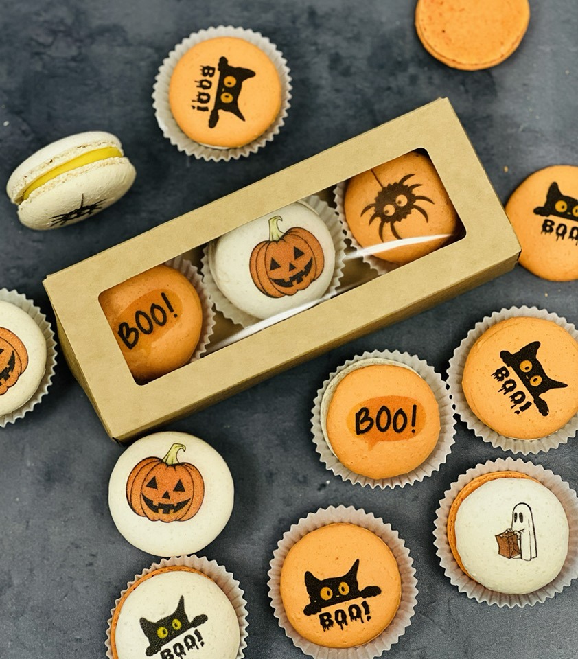MAKROONID, HALLOWEENI DISAINIGA, ERINEVAD TÄIDISED, hind 6,5.- pk
